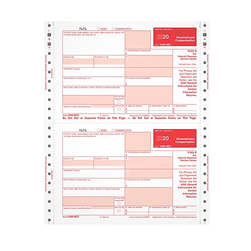 Adams 2020 1099NEC Tax Form, White, 24/Pack (STAX55020NEC) at Staples
