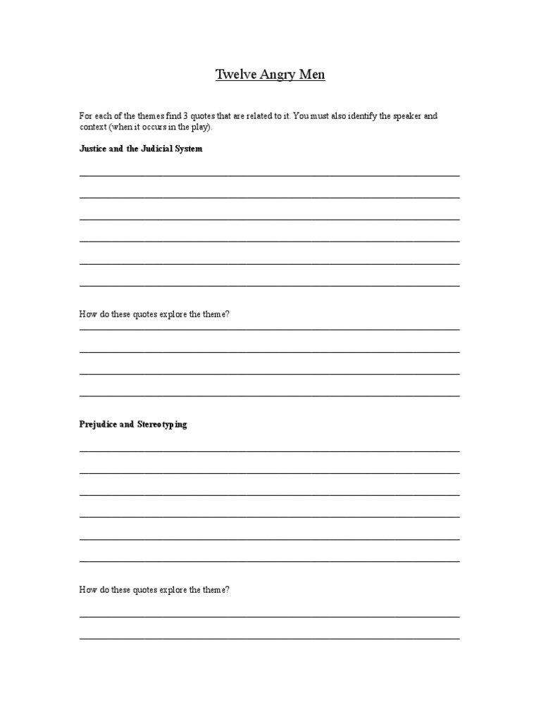 twelve angry men quote to theme worksheet Psychology & Cognitive