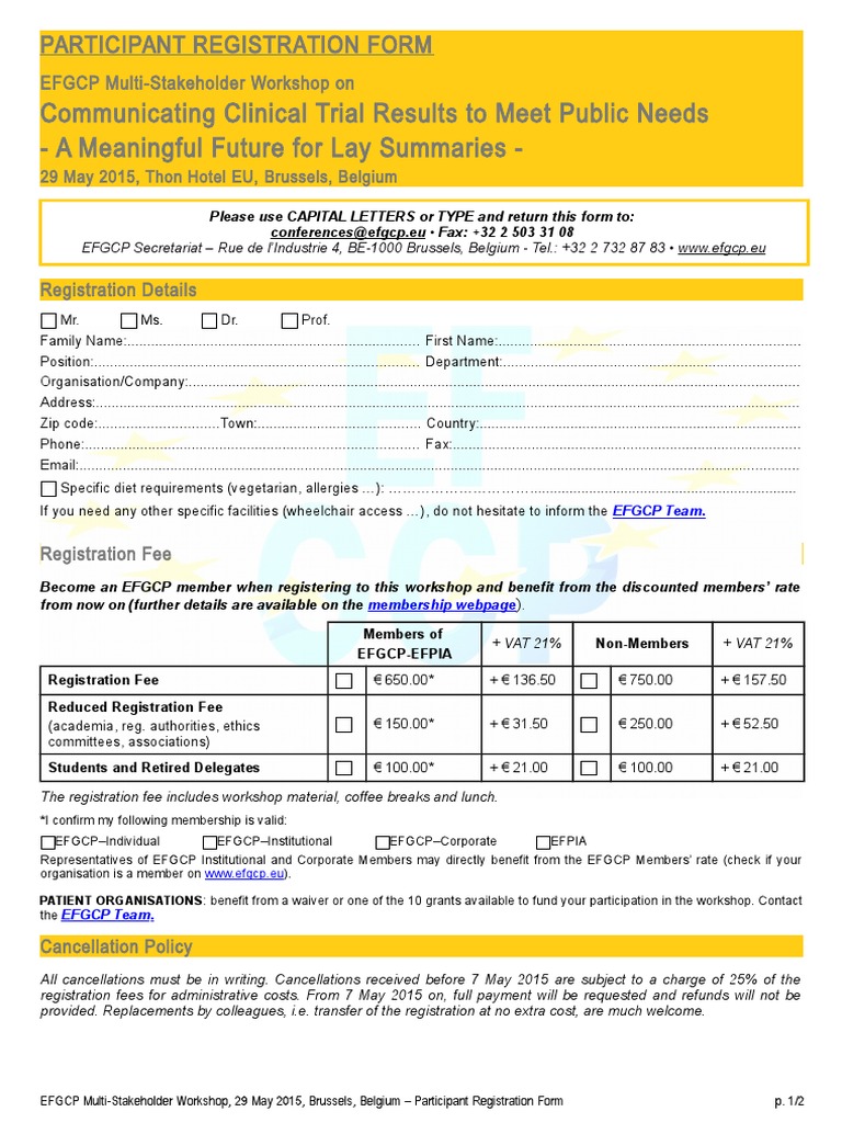 Registration Form Efgcp Lay Summaries 29 May Participants