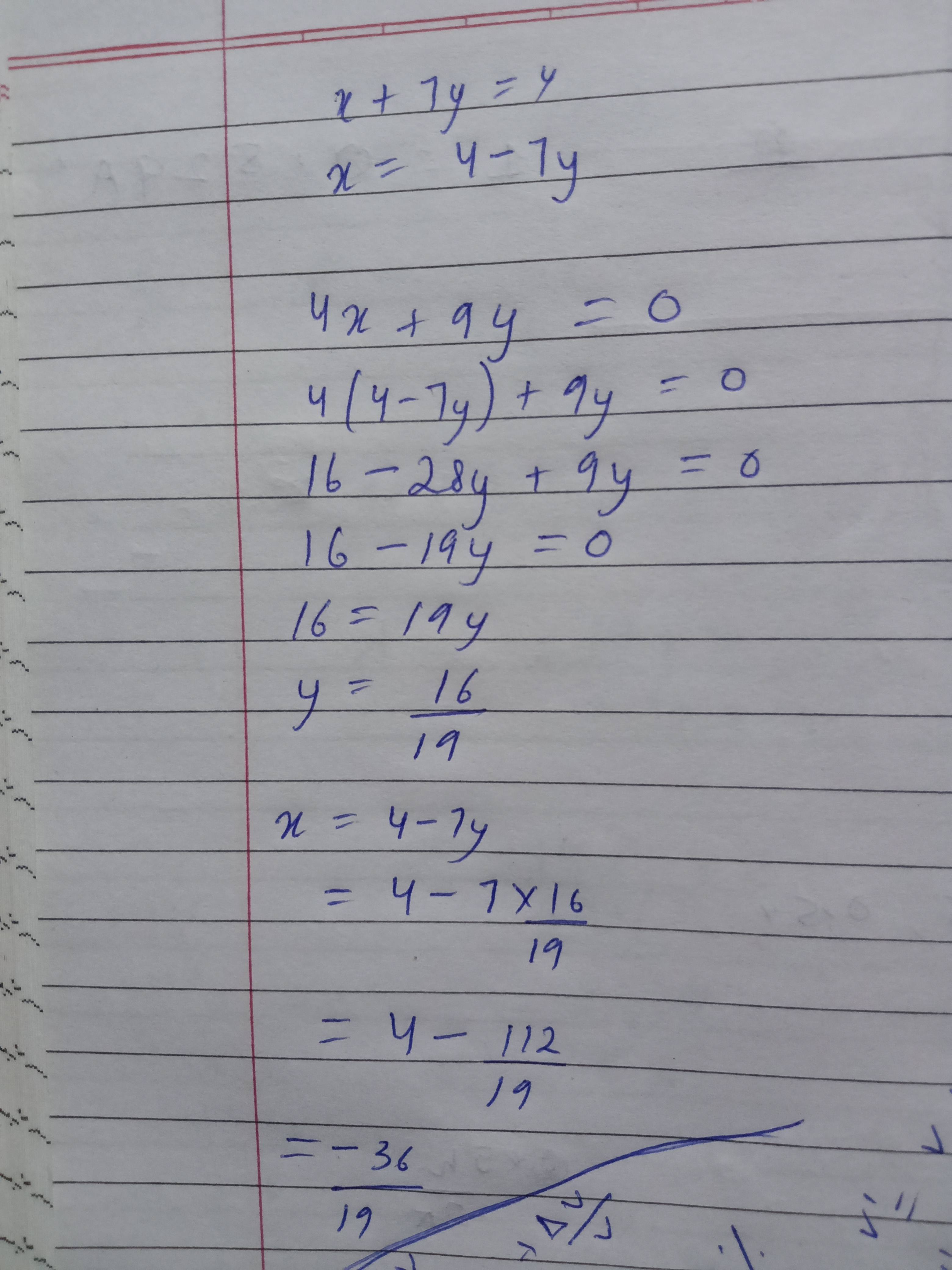 Solve using substitution method 4x+9y=0 , x+7y=4 Sarthaks eConnect