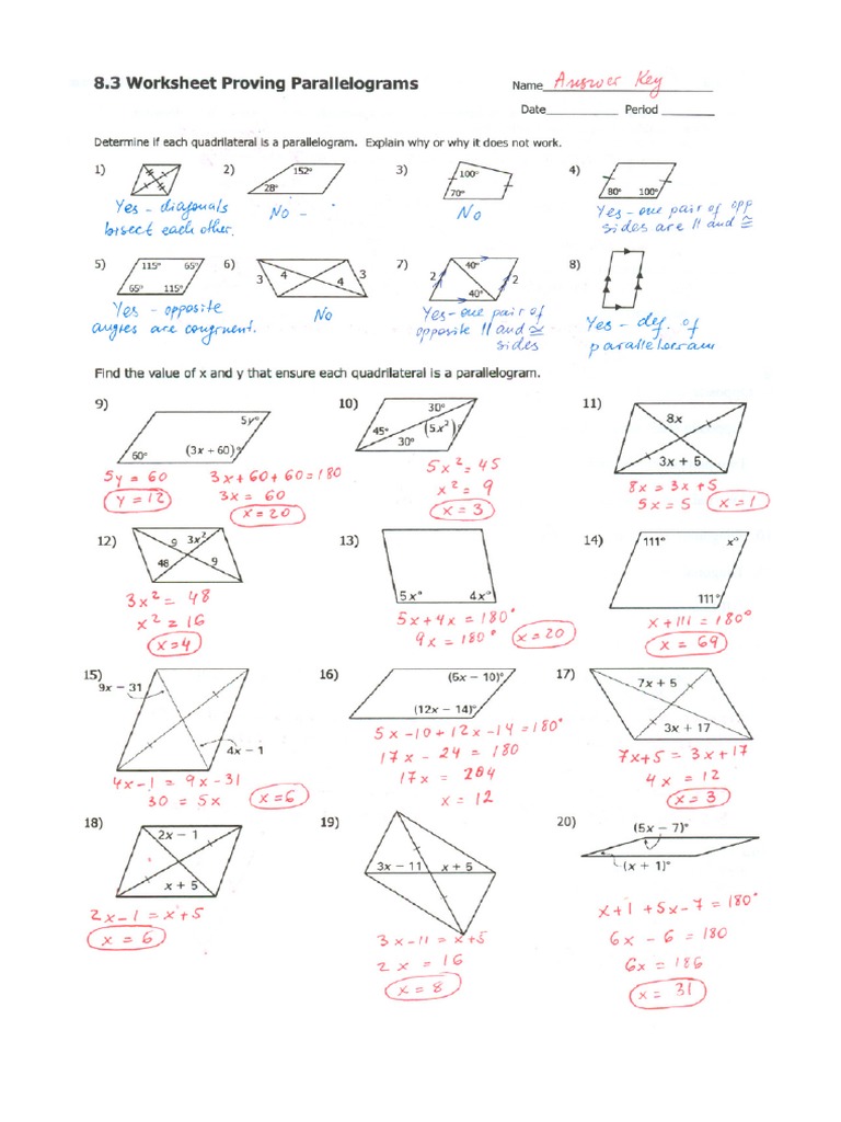 8.3 worksheet proving parallelograms name answer key date period determine if each. This module will deal with two away them − parallelograms and. A parallelogram is a quadrilateral that has 2 pairs of parallel sides. Web is contrast, there are many categories of features quadrilaterals.