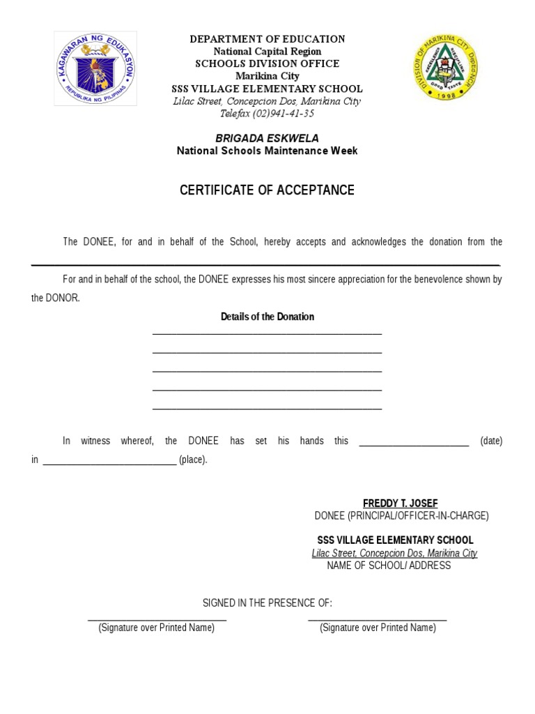 Deed of Acceptance