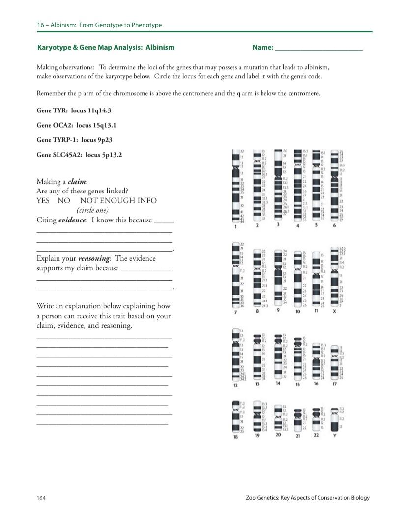 Each student will have a different gene. From genotype to phenotype supplemental activity: Web oculocutaneous albinism type 4 (oca4) are characterized by hypopigmentation of the fuzz and skin. 1) each student will analyze one of four genes on the back of this sheet: Web albinism refers to a group of genetic conditions that are characterized by reduced melanin levels leading.