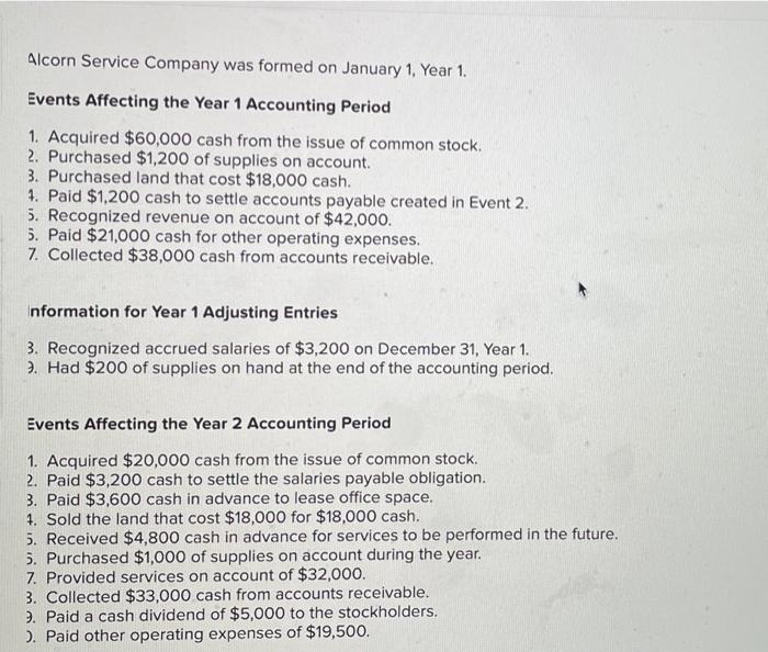 Events affecting the year 1 accounting period 1. Web alcorn service company was formed on january 1, year 1. Alcorn service company was formed on january 1, year 1. Events affecting the year 1 accounting period 1. Alcorn service company was formed on january 1, year 1.
