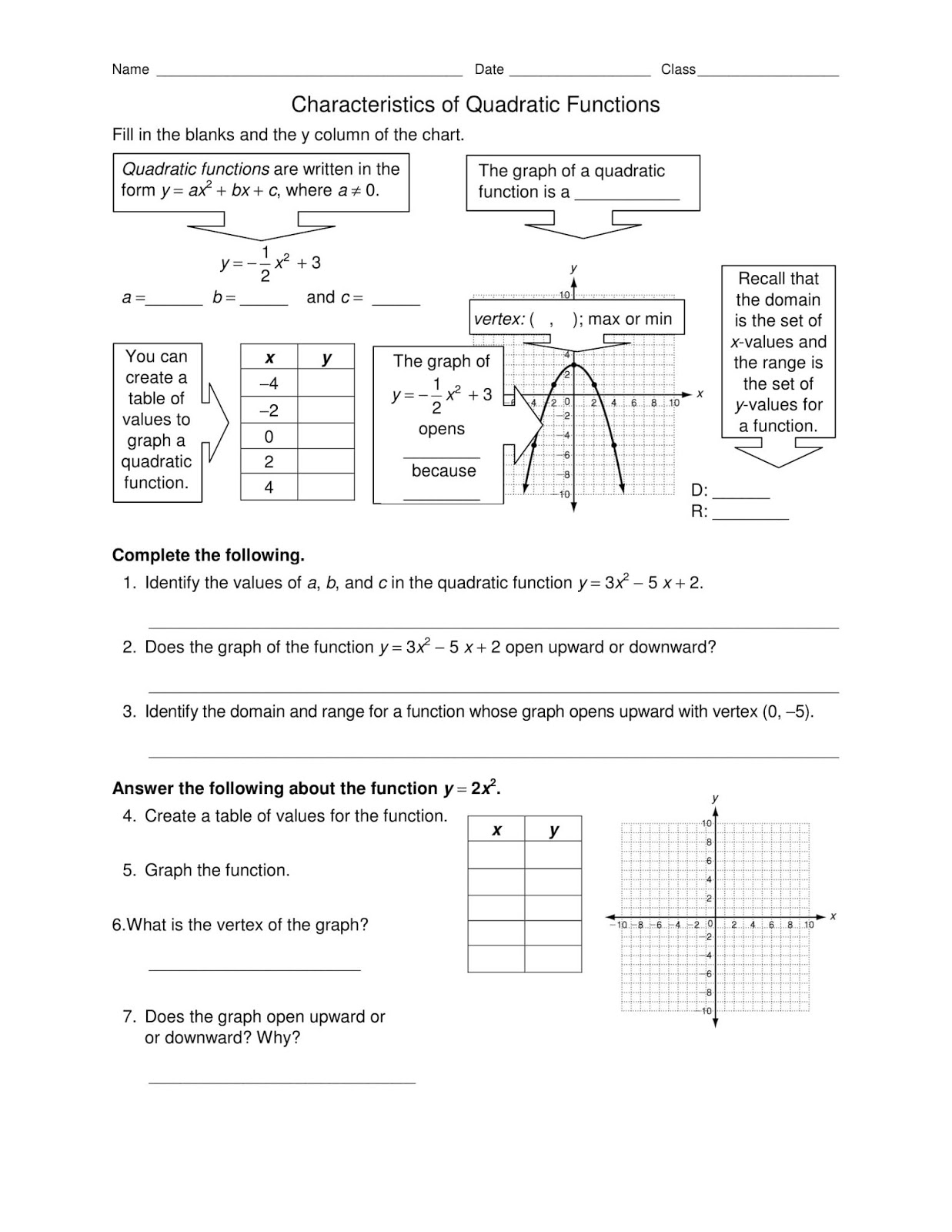 Web Characteristics Of Quadratic Function Worksheet Is A Math Worksheet Designed To Help Learners Activate Prior.