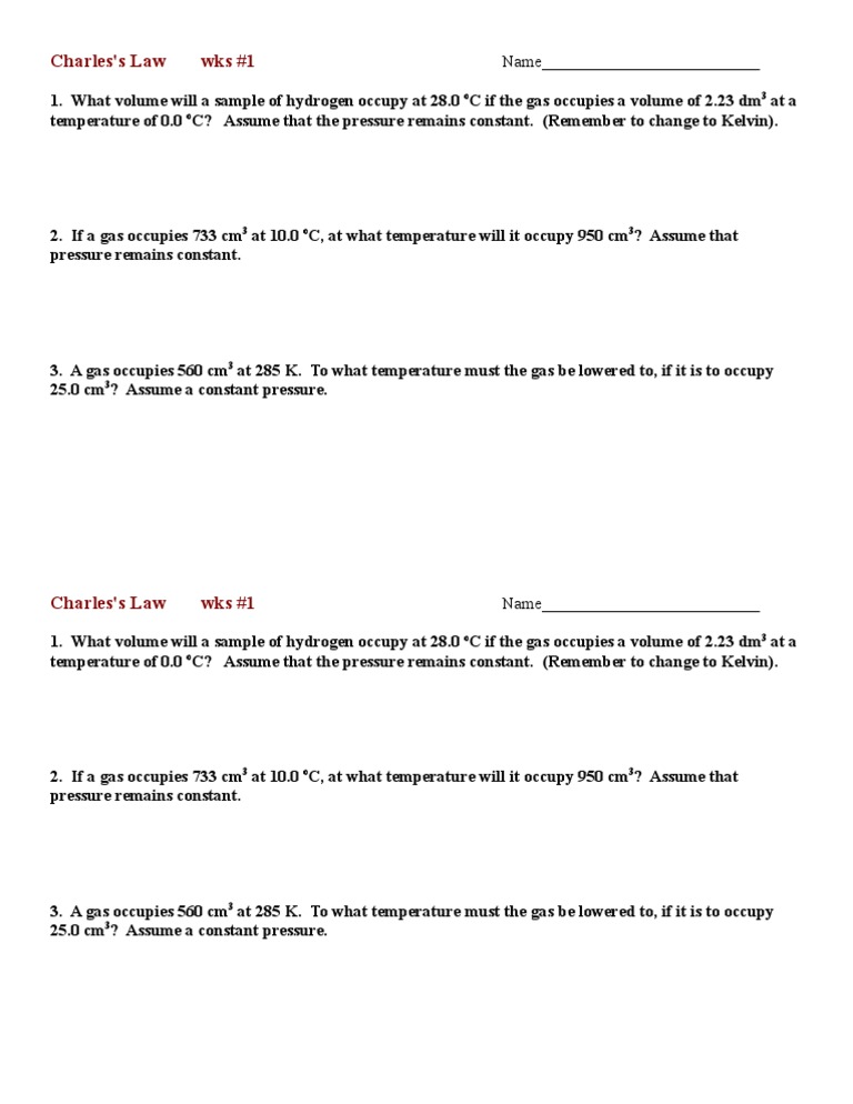 Web Here Are Some Sample Questions And Answers For Charles' Law Worksheet 1: