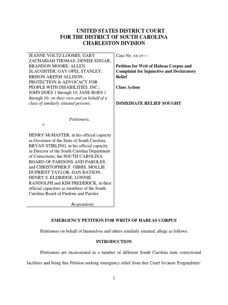 United States District Court For The District Of South Carolina