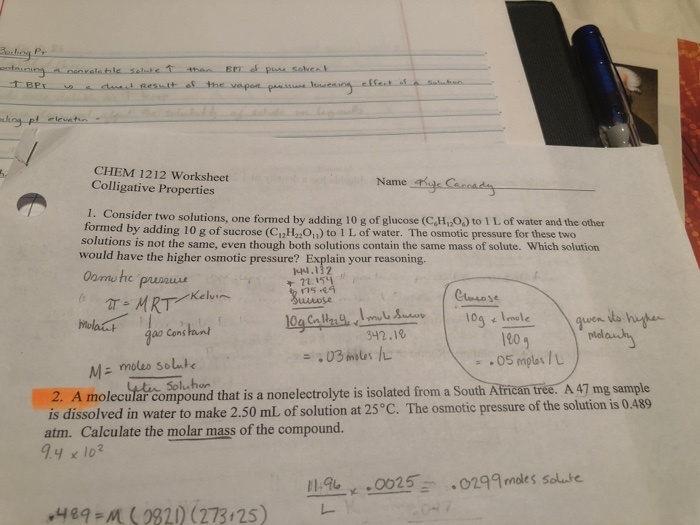 Solved went CHEM 1212 Worksheet Colligative Properties 1.