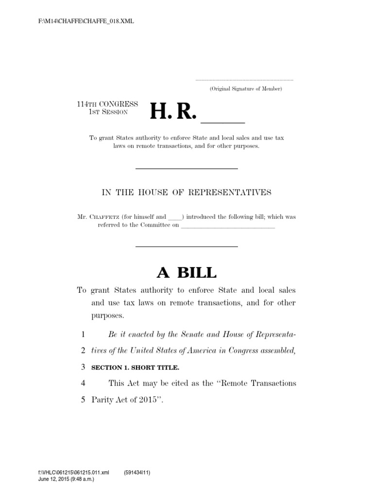 Remote Transactions Parity Act DRAFT Use Tax Taxes