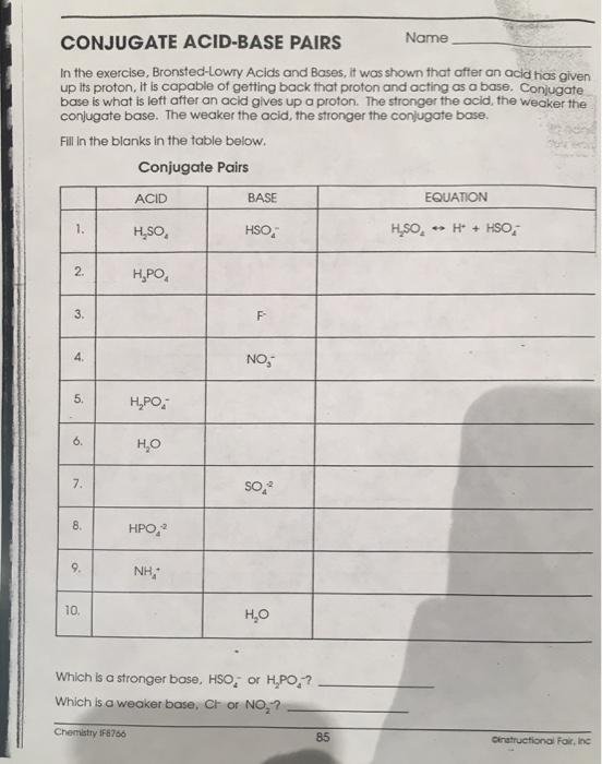 Conjugate Acid Base Pairs Chem Worksheet 192 Answers Kayra Excel