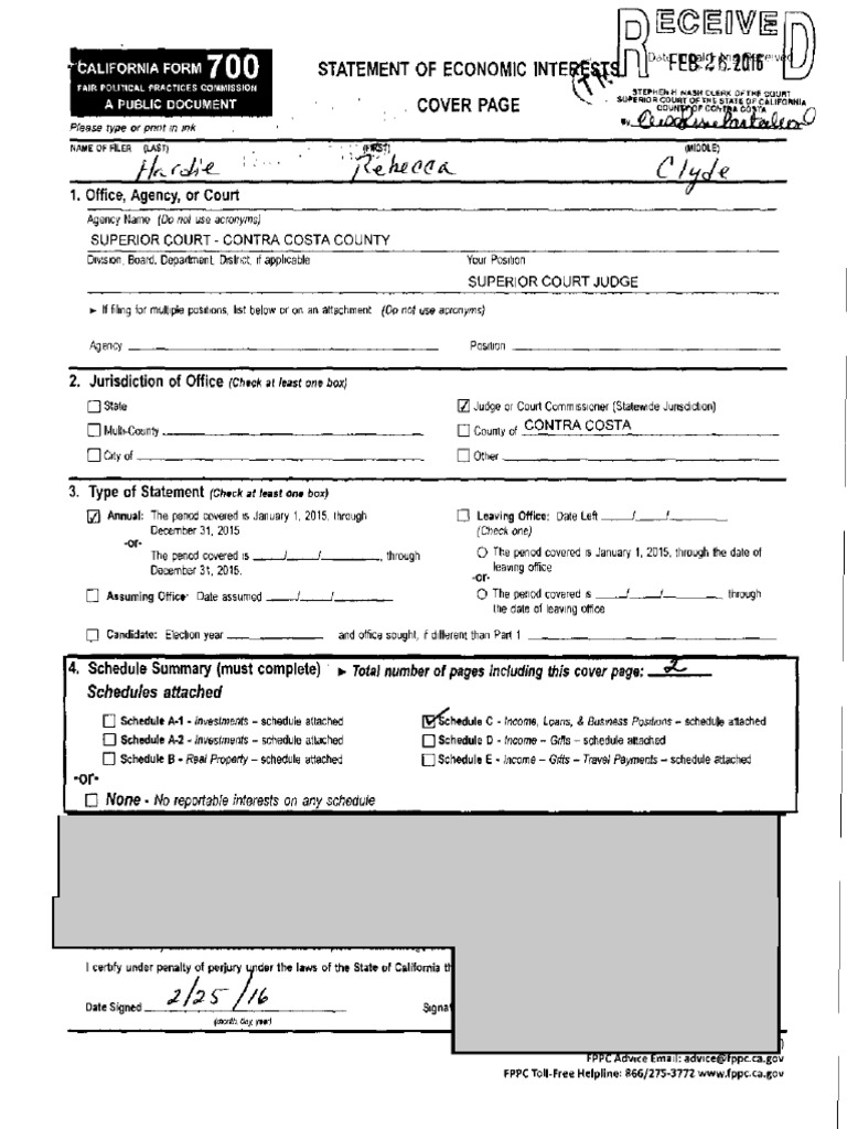 Contra Costa Superior Dependency Court Judge Rebecca Hardie's Form 700