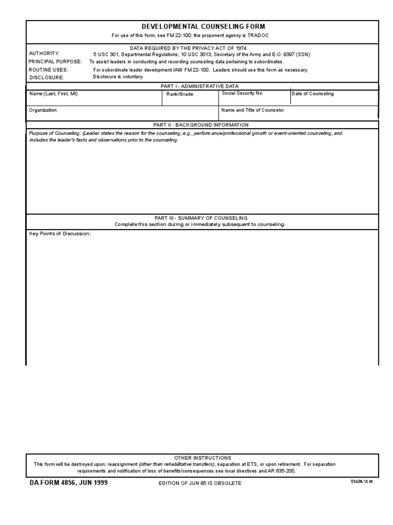 Part i, part ii, part iii and part iv. Web we deliver detailed instructions and the da 4856 example, simplifying the filling process. Web latest articles in counseling. Web the da form 4856 is a developmental counseling form with four parts namely; Page includes various formats of da form 4856 for pdf, word and excel.