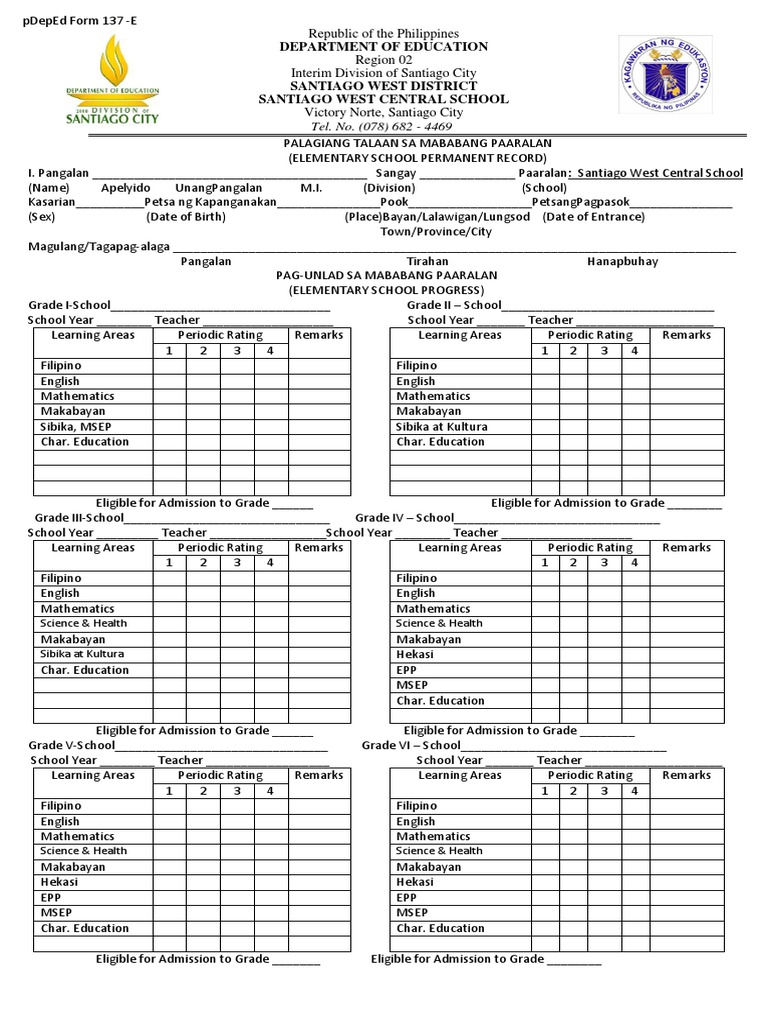 Form 137 (3) Philippines Education Policy