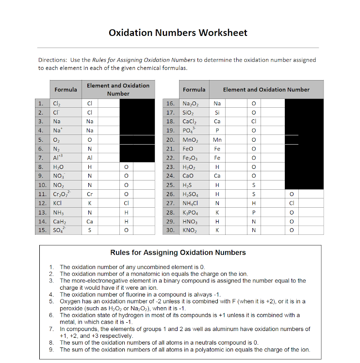 Web rules for assigning oxidation numbers. Use the rules for assigning oxidation numbers to determine the oxidation number assigned to each. Web the assigning oxidation numbers to elements worksheet consists of two pages:page 1: Web use the changes in oxidation numbers to determine which elements are oxidized and which are reduced in these.