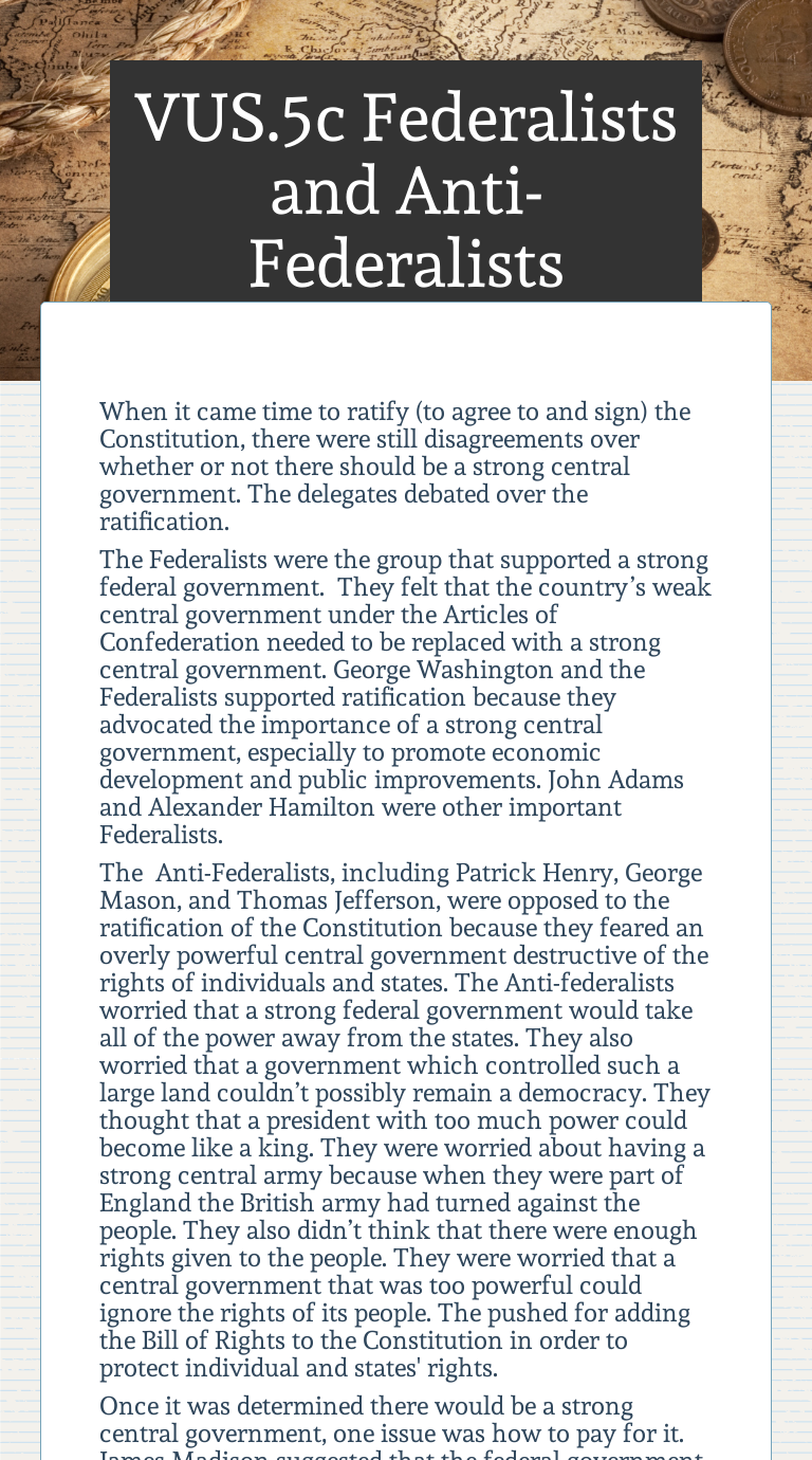 VUS.5c Federalists and AntiFederalists Interactive Worksheet by