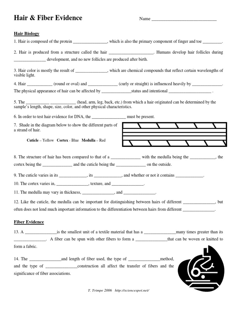 hair and fiber evidence worksheet