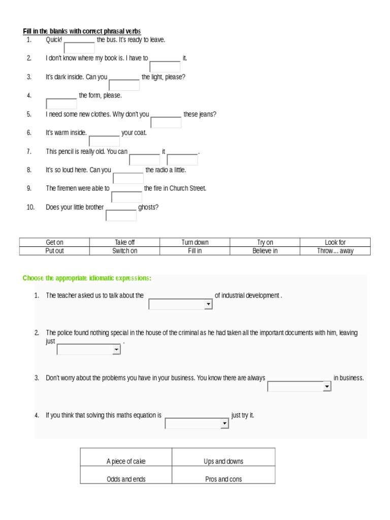Fill in the Blanks With Correct Phrasal Verbs Idiom Languages