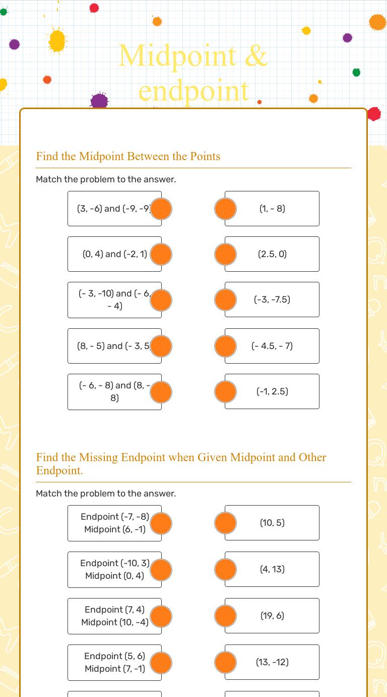 Web how to find missing endpoint. Enter the coordinates of the known endpoint. Web use this engaging activity to practice calculating midpoints. Web given the midpoint and one endpoint of a line segment, find the other endpoint.