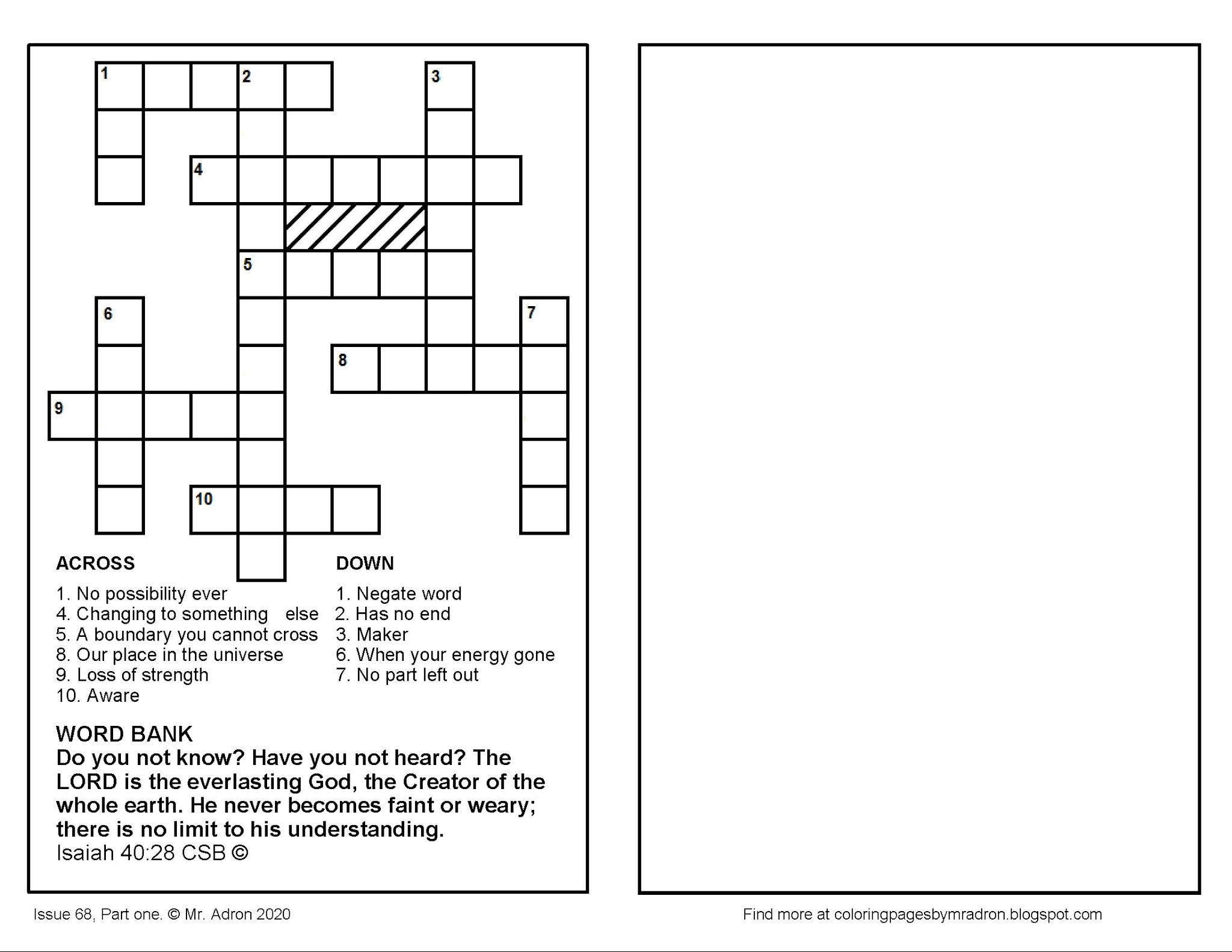 Coloring Pages for Kids by Mr. Adron Free Bible Verse Crossword Puzzle
