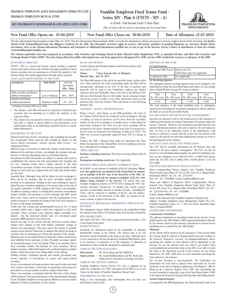 Franklin Templeton FTF 3 Years Series 14 Plan A Application Form