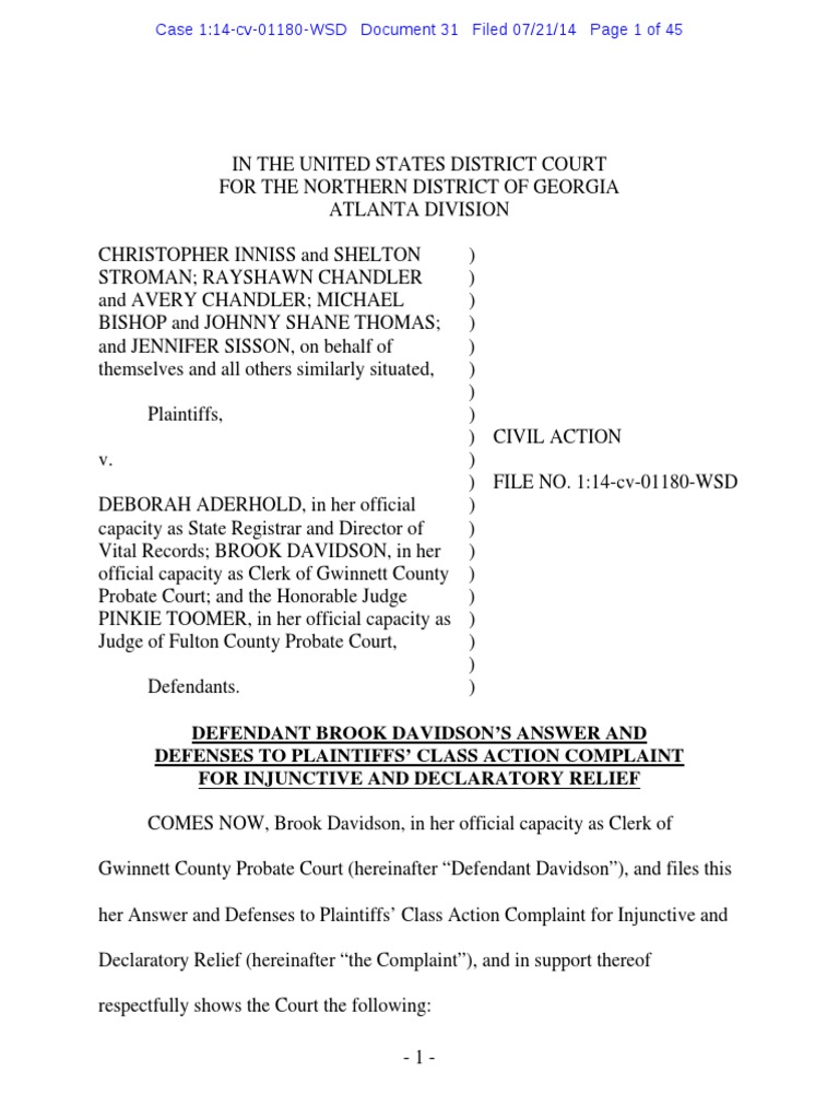 Probate Court Clark Brook Davidson Responds to Gay Marriage