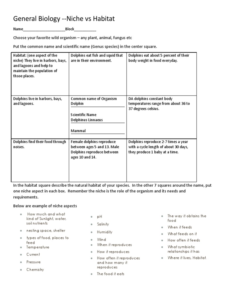 Students will receive a sheet of. Web showing 8 worksheets for habitats and niches. _____ habitats and niches worksheet read: Web do you think rapid or gradual environmental changes have a greater potential to affect an organism's niche?. Area in which an organism lives, including the biotic and abiotic factors.