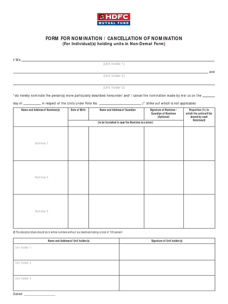 Web in case you have multiple folios, then you may take a photocopy of this form. Nomination ensures all rights and/or amount(s) payable in respect of the holdings in schemes of hdfc mutual fund would vest in and be transferred. Web how to check nominee & update in hdfc demat account?#hdfcsecurities #demataccount. Web form for fresh nomination / change of existing nomination/ cancellation of nomination applicable for individual.
