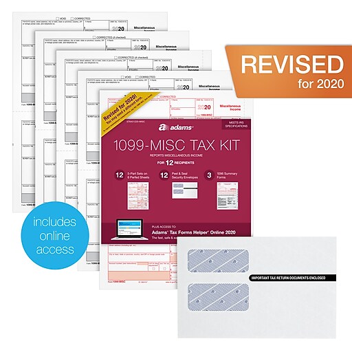 Adams 2020 1099MISC Tax Forms with Self Seal Envelopes, Access to Tax