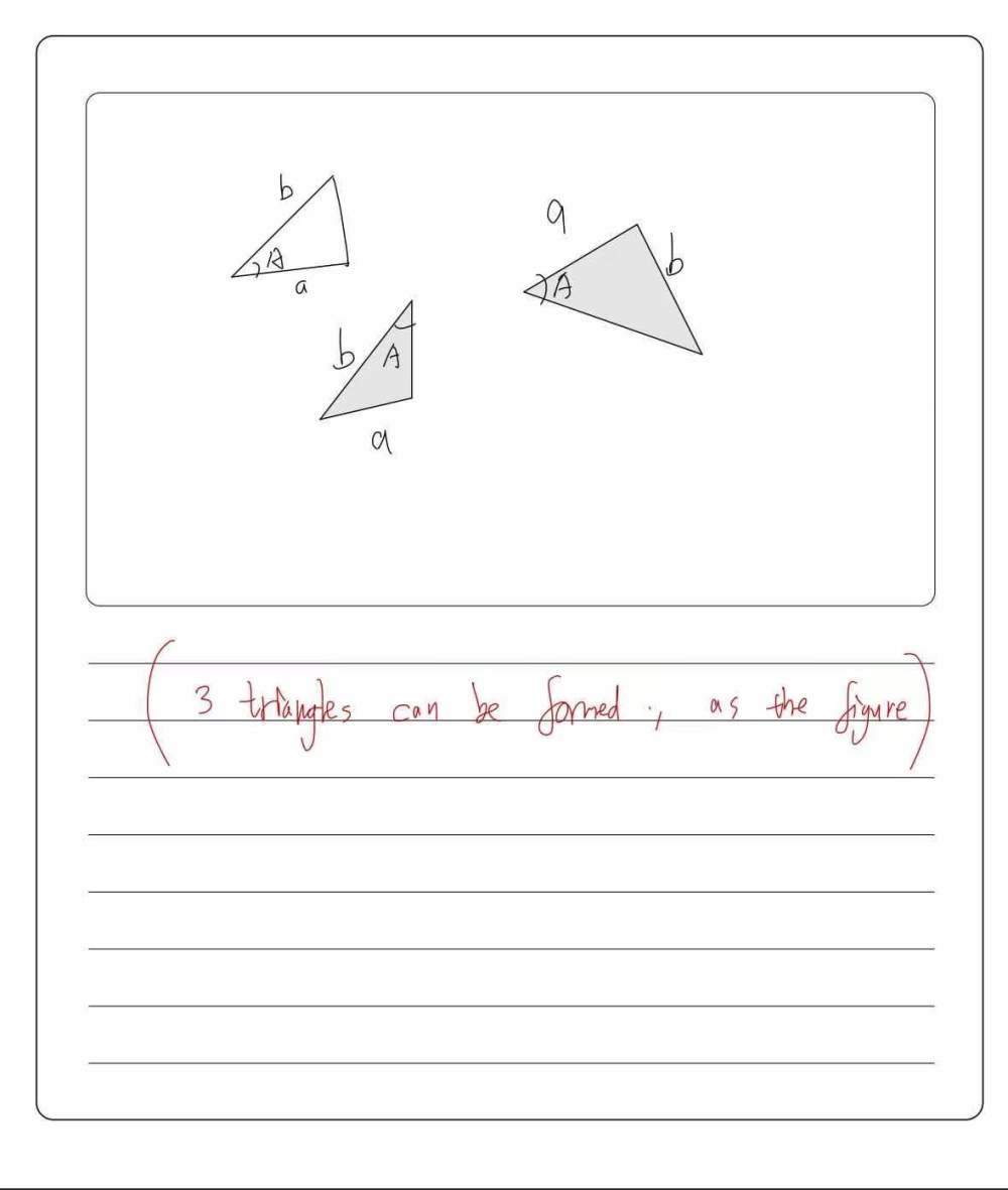 Web your formula includes ‘triangles’ like a a b. Using a calculator, we can find that arcsin (0.31)=18 degrees, approximately. You are given two sides and the angle between these sides (sas) you are given three sides and. Web a is acute and a > b, so there is only one (obtuse) triangle that can be constructed. Web in this.