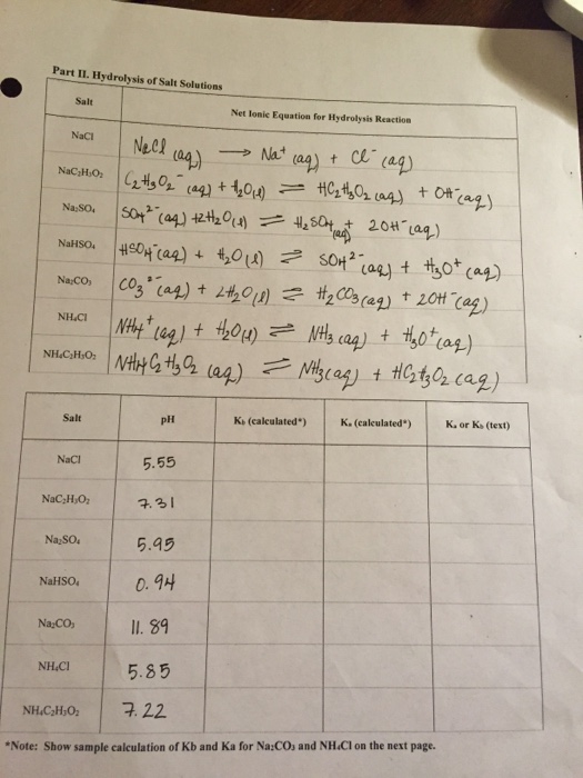 Hydrolysis Of Salts Worksheet Answers Worksheet Works