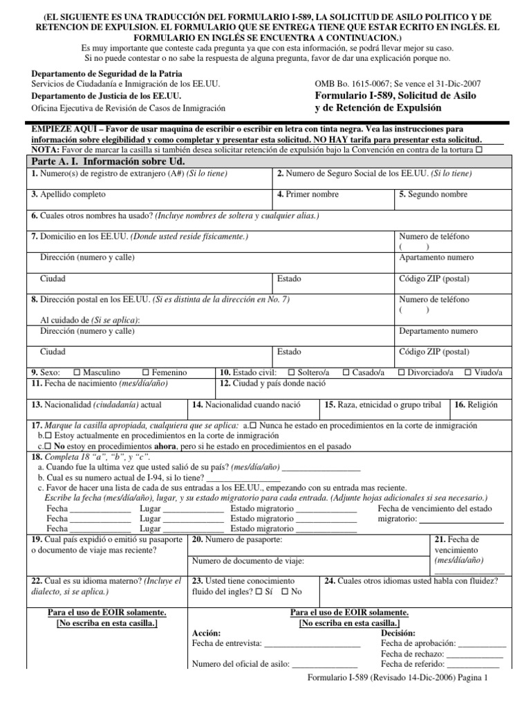 I589 Form In Spanish - Web instructions what is the purpose of this form? You are eligible for asylum. Esta página incluye links a recursos confiables para. Social security number (if any) 4. Cambio del lugar de presentación del formulario i. You are eligible for withholding. Some people can now apply for asylum online. Information for afghan nationals (dari) Even if you are not yet a citizen, you can apply for. Web use a i 589 form in spanish pdf 2019 template to make your document workflow more streamlined.