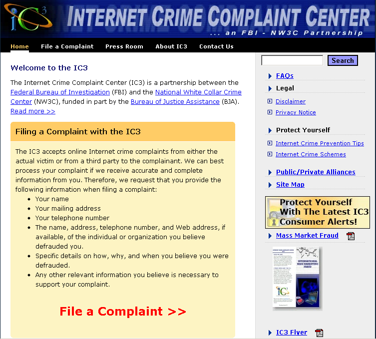 Web Internet Crime Complaint Center (Ic3) File A Complaint.