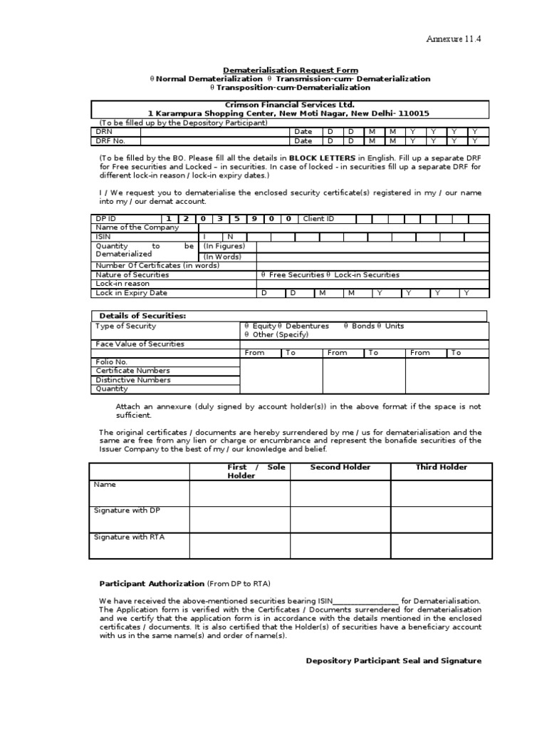 Web introduction when we need to dematerialize physical shares and convert them to electronic form, the first step is to. Web we would like to show you a description here but the site won’t allow us. Feel all the advantages of completing and submitting legal forms on the internet. For that the holder has to submit a. Web the first.