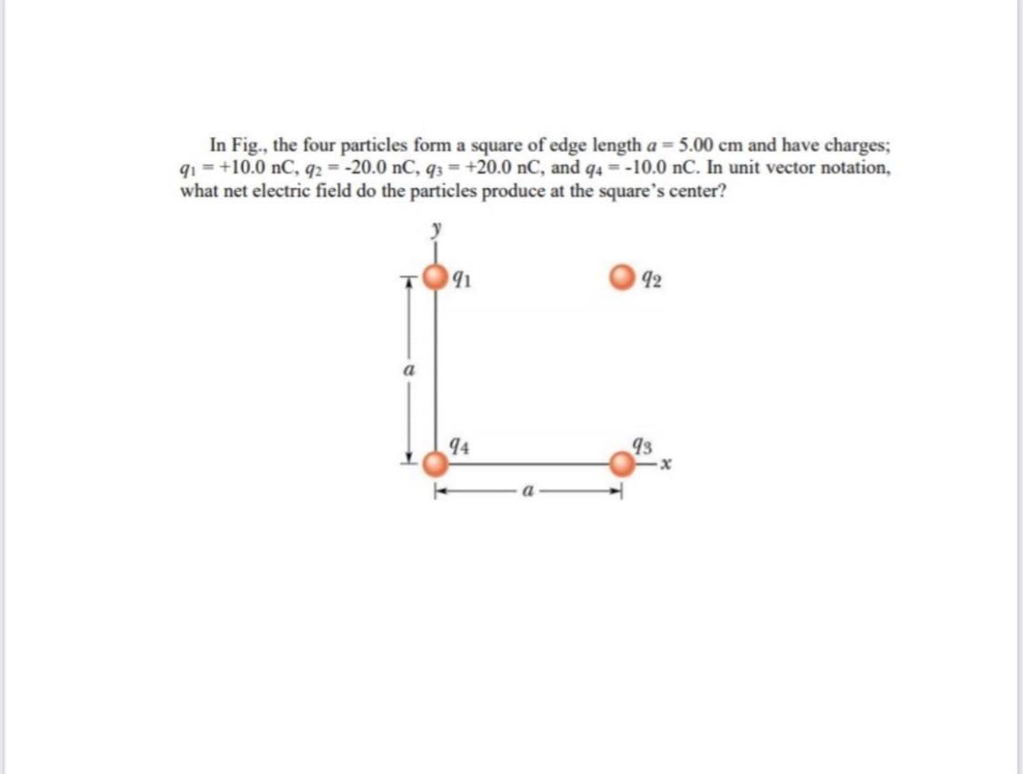 Web in the figure four particles form a square with edge length a = 3.00 x 102 m. What is q if the net. 0 o and distance d = 2. The charges are q1 = 94 = 2.05 x 10 15 c and q2 = 93=.