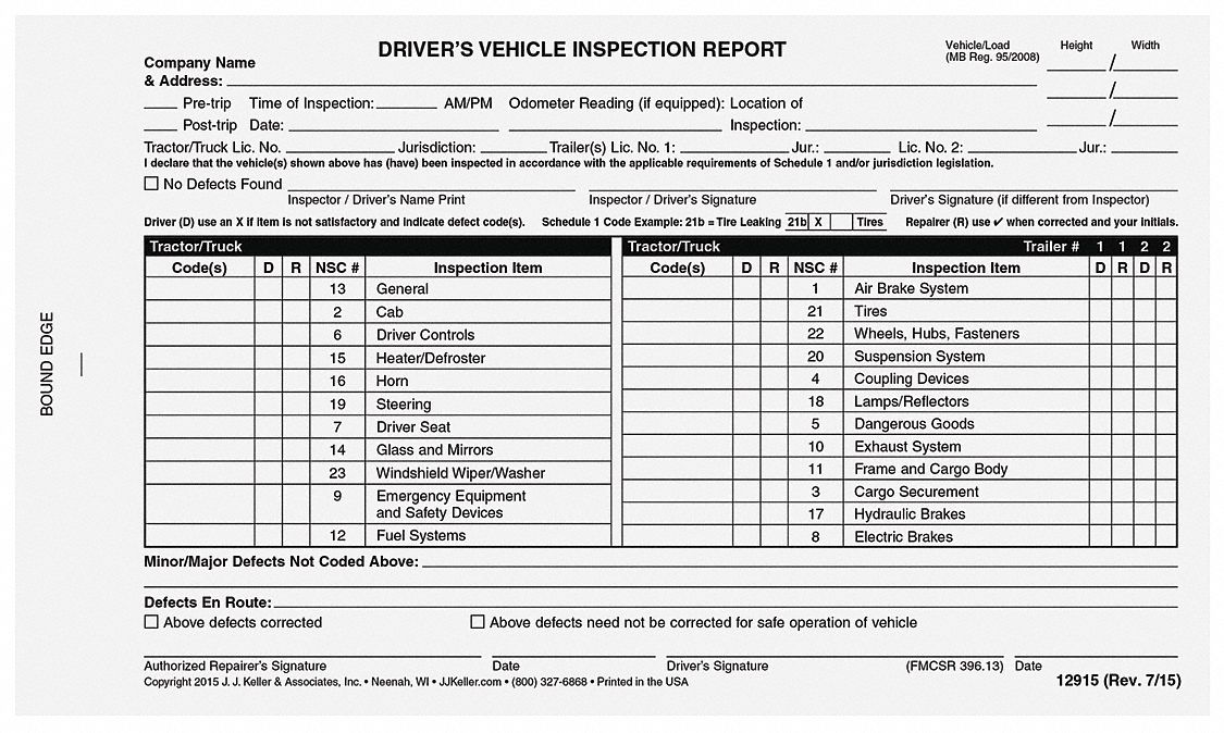 Jj Keller 1854 3.84 Vehicle Inspection Form, 2 Ply, Carbonless