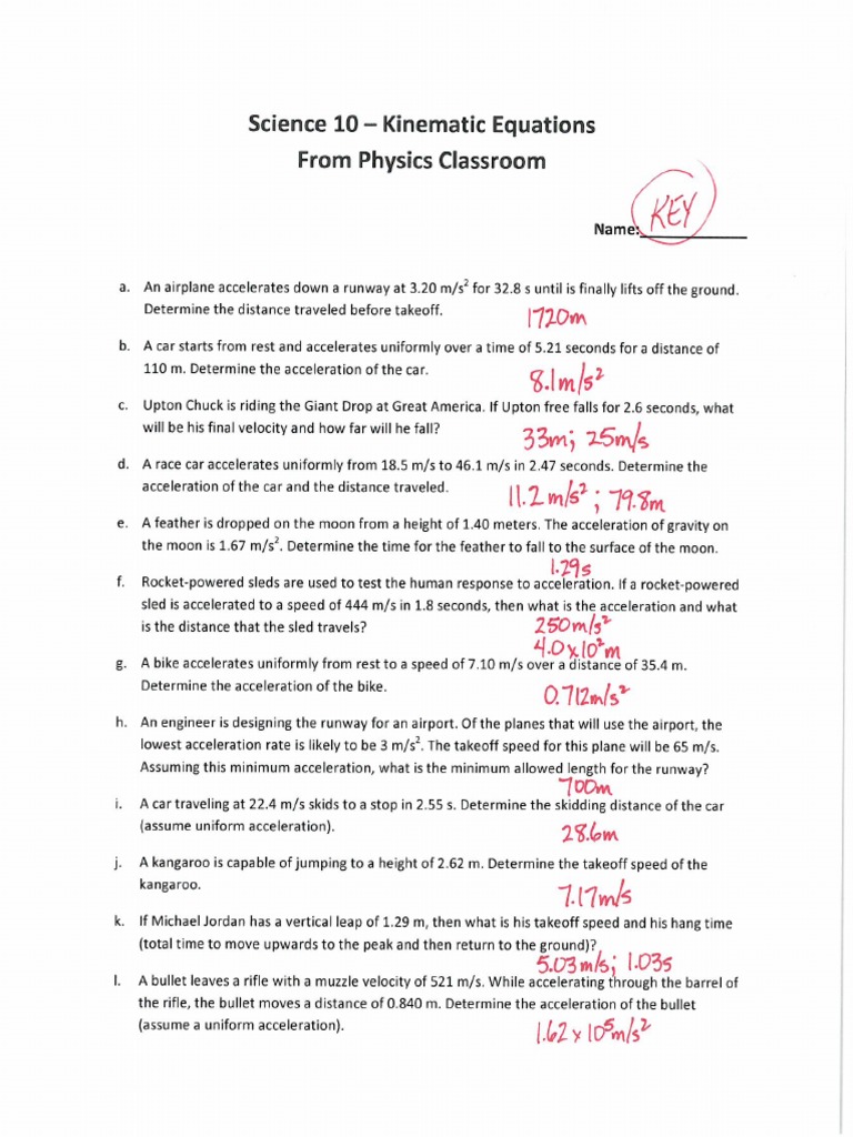 Web the solutions guide includes all the pdfs and source documents (ms word files) of the think sheets at the curriculum corner,. This is a free preview file. Web this worksheet has totally different issues where college students are given three variables and should use the. Practice problems with solutions in physics physexams.com 1. A race car accelerates uniformly from 18.5 m/s to 46.1 m/s in 2.47 seconds. Web kinematics worksheet with answers. Web a worksheet of kinematics questions with answers. See answers and explanations below. Web posted on may 11, 2023 kinematics worksheet with answers. Web 25 kinematics worksheets, 3 kinematics quizzes and 4 kinematics tests with answers. Also list the “implied” givens. Web 25 worksheets motion kinematic worksheets grade 11 physics worksheet with answer this bundle. Some of the worksheets for this concept are student work for two. Web kinematic equations worksheet dr. Some of the worksheets for this concept are. If the block is pula block of cement of mass 10. A car accelerates uniformly from rest to a. Web rearranging the kinematics formulas. Web kinematics formula is altogether about the motion of bodies at points, devoid of considering the cause because of which it. The full hq sheet with answers.