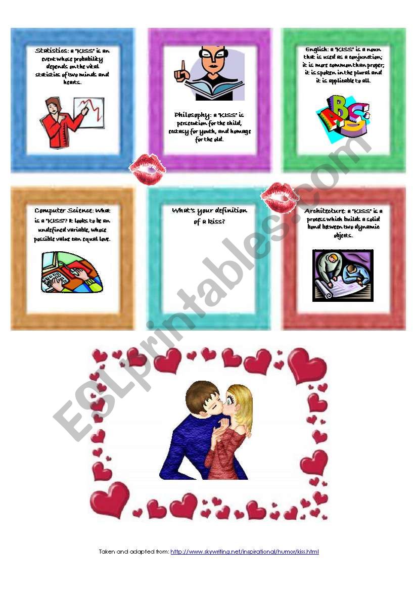 a kiss according to different fields 2/2 ESL worksheet by Damielle