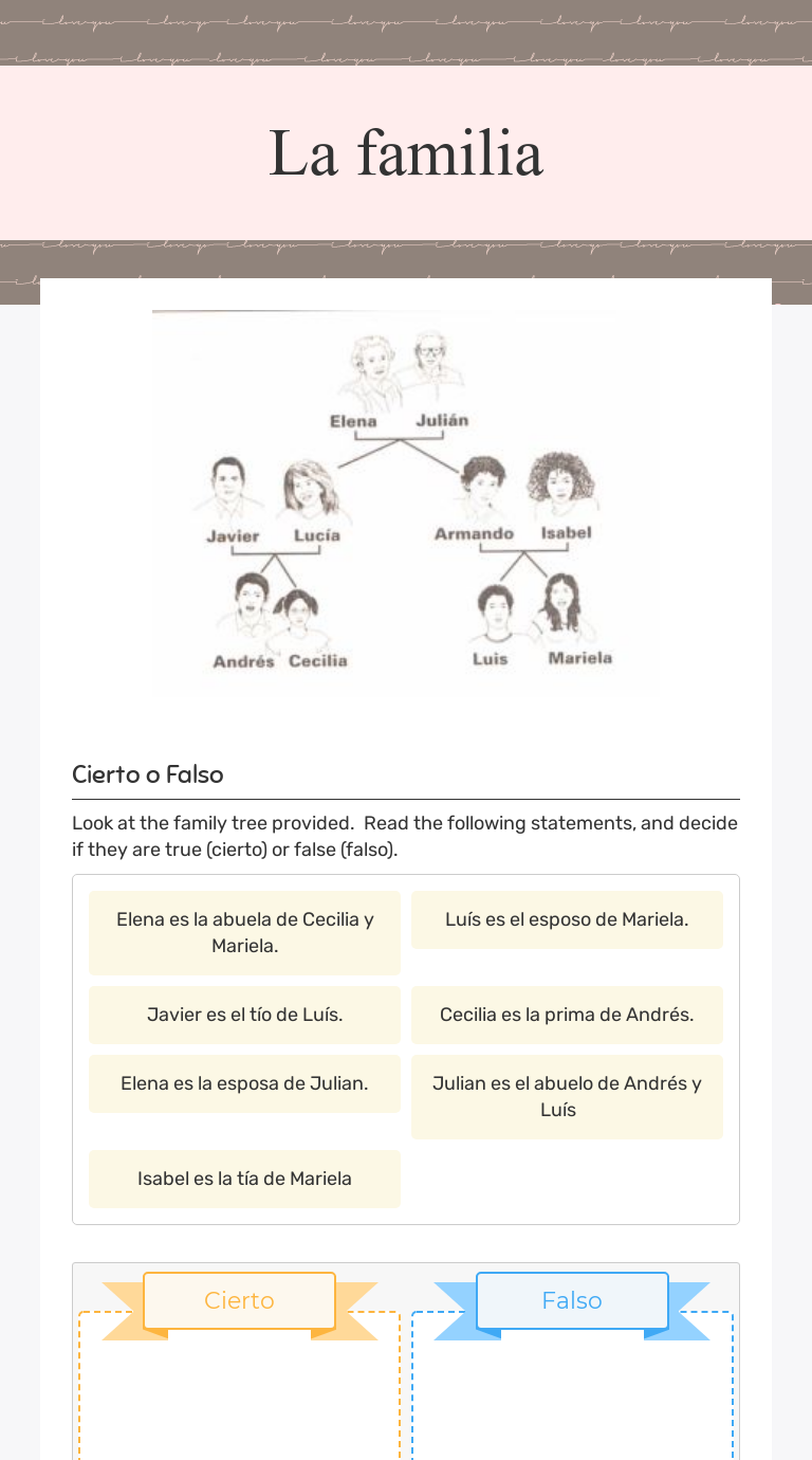 Web $ 3.00 save yourself time and give your students valuable practice! This pack of activities includes several ways for your students to practice with family vocabulary in spanish! In this activity, students will practice. They’ll help consolidate learning and. Read this carefully because on the next page you will be asked.