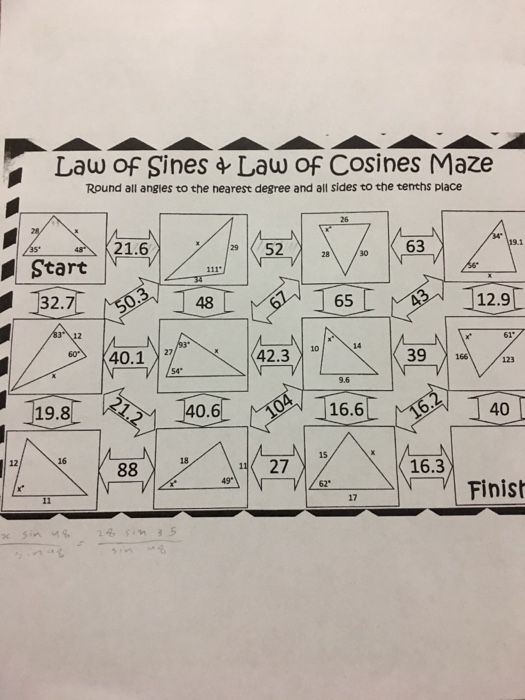 Explore our library of the law of cosines worksheets to solve for the unknown angle or the. Web law of sines and law of cosines mazes this is a set of four mazes to practice using the law of sines and law of cosines to find. Law of sine and cosine worksheet is a math worksheet designed. Web in the center of one side of the triangle, have students write the law of sines formula.