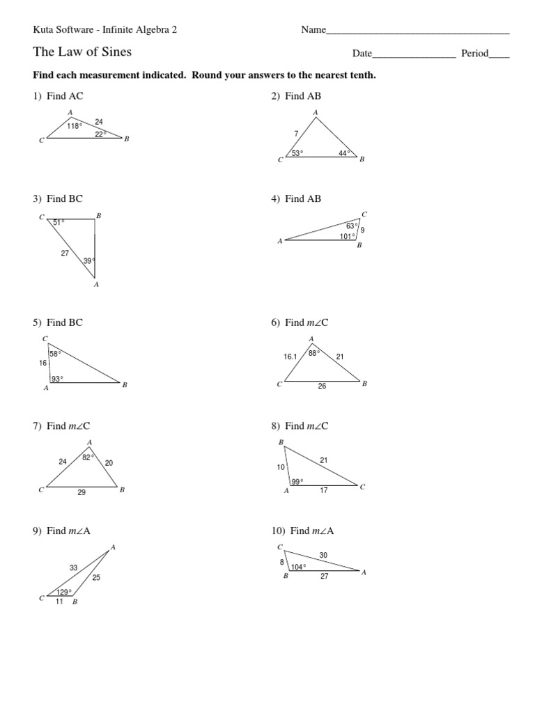 Round your answers to the nearest tenth. 3 pages, 6 problems, answer key. The last activity is a reflective. This worksheet includes word problems as well as. Ambiguous case for any :