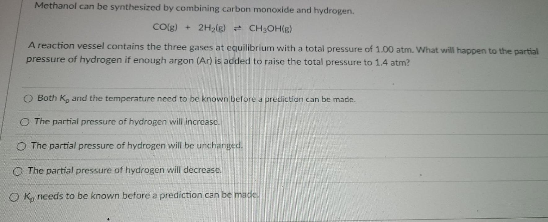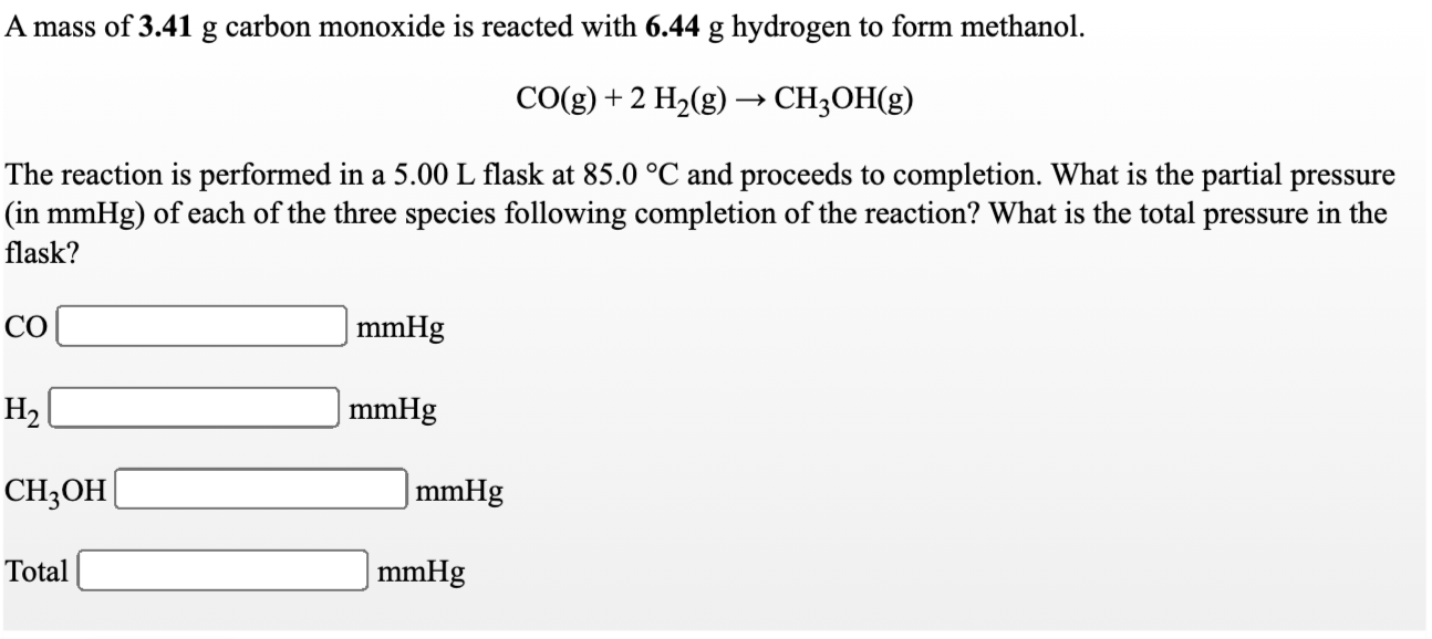 Web Carbon Monoxide Gas Reacts With Hydrogen Gas Atelevated Temperatures To Form Methanol According To Thisequation.co (G).