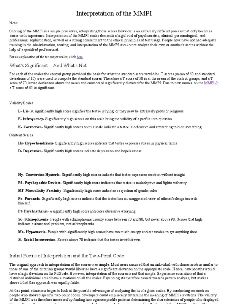 Interpretation of the MMPI Scales Metaphysics Of Mind Cognitive Science