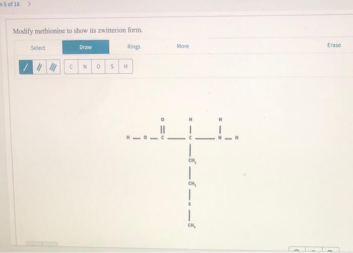Solved n 5 of 18 Modify methionine to show its zwitterion