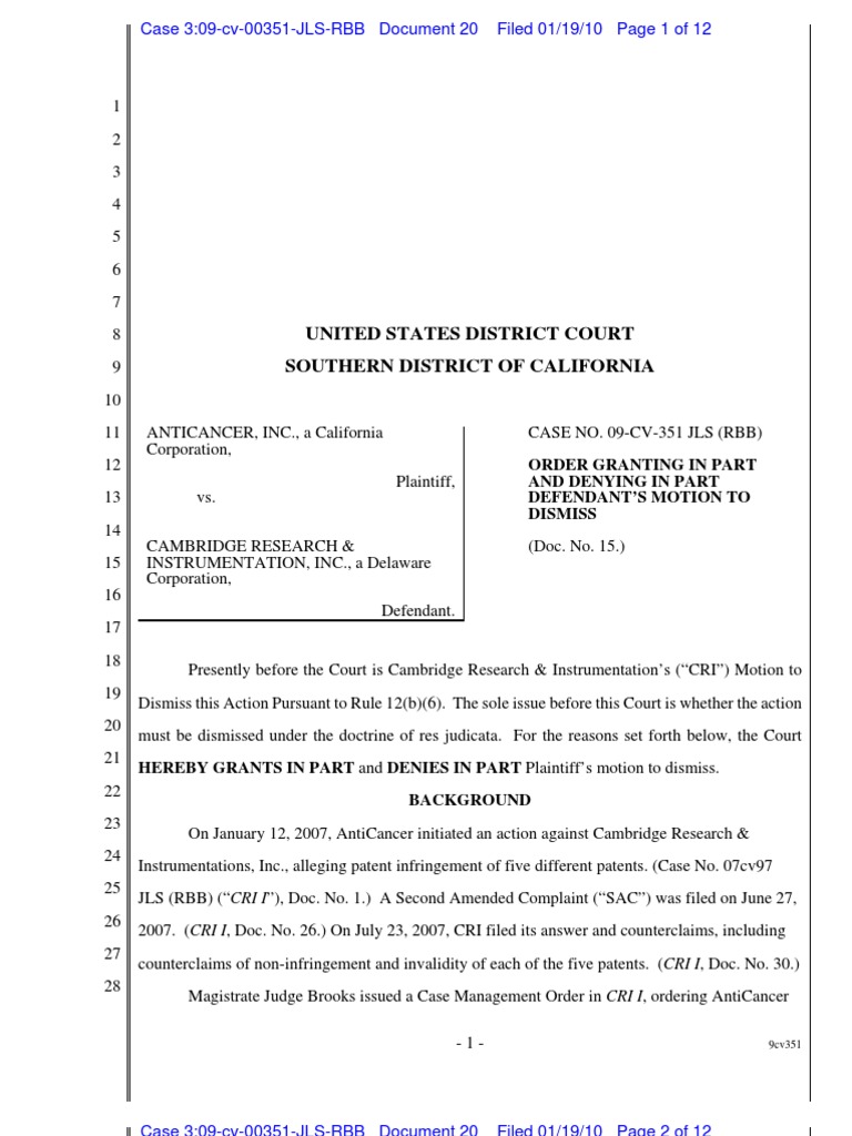 Motion To Dismiss 1 PDF Res Judicata Federal Rules Of Civil Procedure