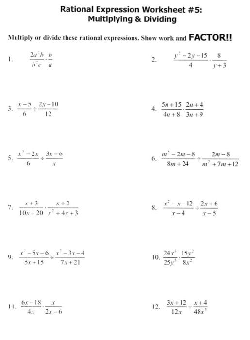 Multiplying And Dividing Rational Expressions Worksheet. Lesupercoin