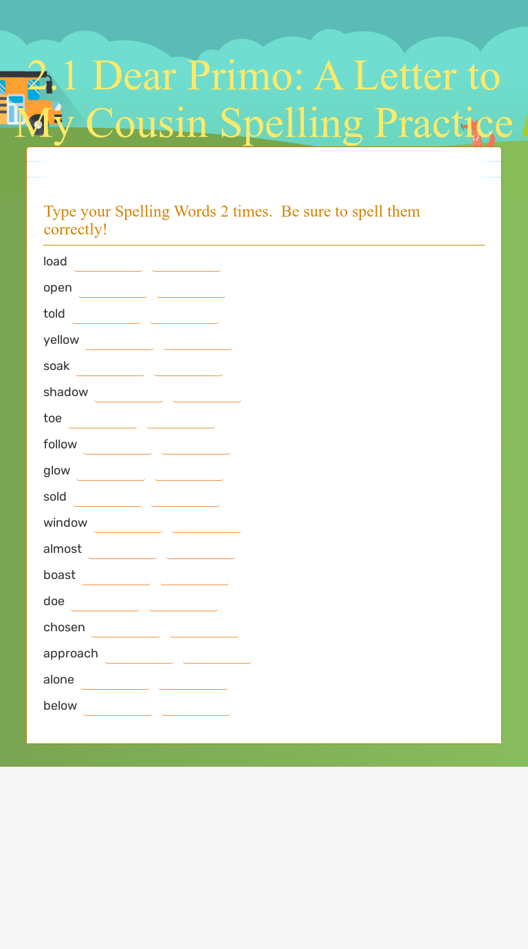 2.1 Dear Primo A Letter to My Cousin Spelling Practice Interactive