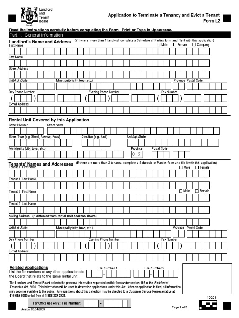 L2 Application to Evict a Tenant (N12 Etc) Leasehold Estate Eviction