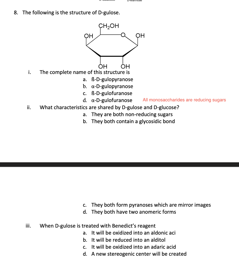 Solved 8. The following is the structure of Dgulose. CH2OH