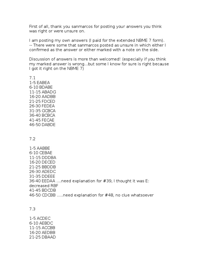 4.10 NBME Subject Exam Answers Medicine Health Care