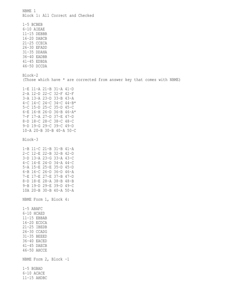 NBME Step 1 Form 7 Answers Sheet PDF
